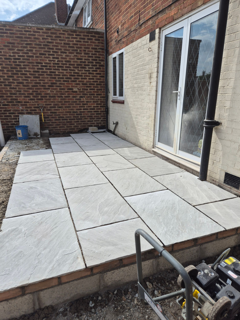 Introducing the recent project completed by CB First Choice Landscape, the South Ockendon Driveway & Garden Transformation showcases a stunning sandstone patio, artificial grass, sleeper borders, a concrete base, and a driveway finished with charcoal blocks in light grey with a triple border. With a focus on customer satisfaction, CB First Choice Landscape delivers high-quality landscaping services with a professional touch.